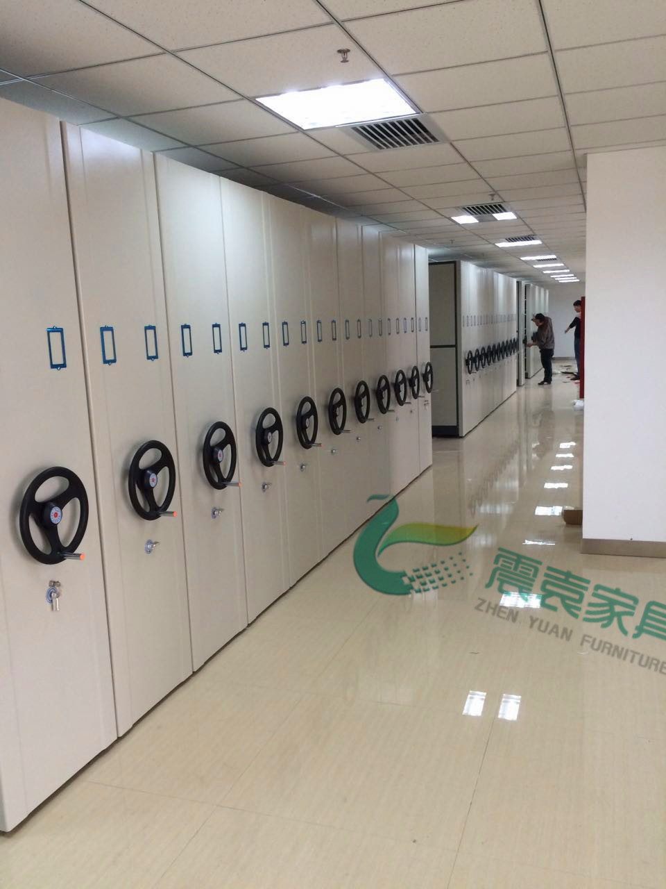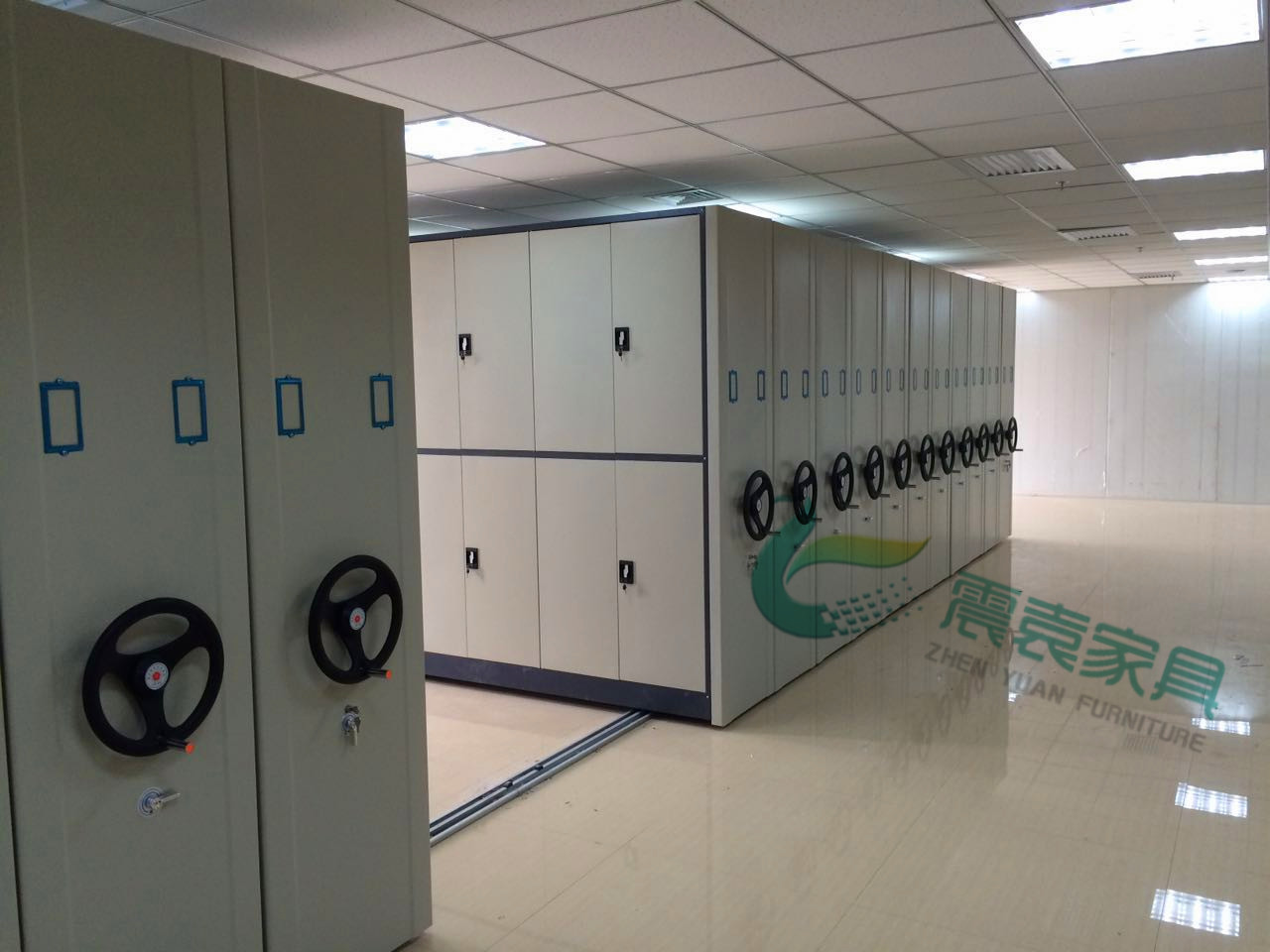 每列均装有制动装置,操作方便,制动可靠,使用存取安全 |