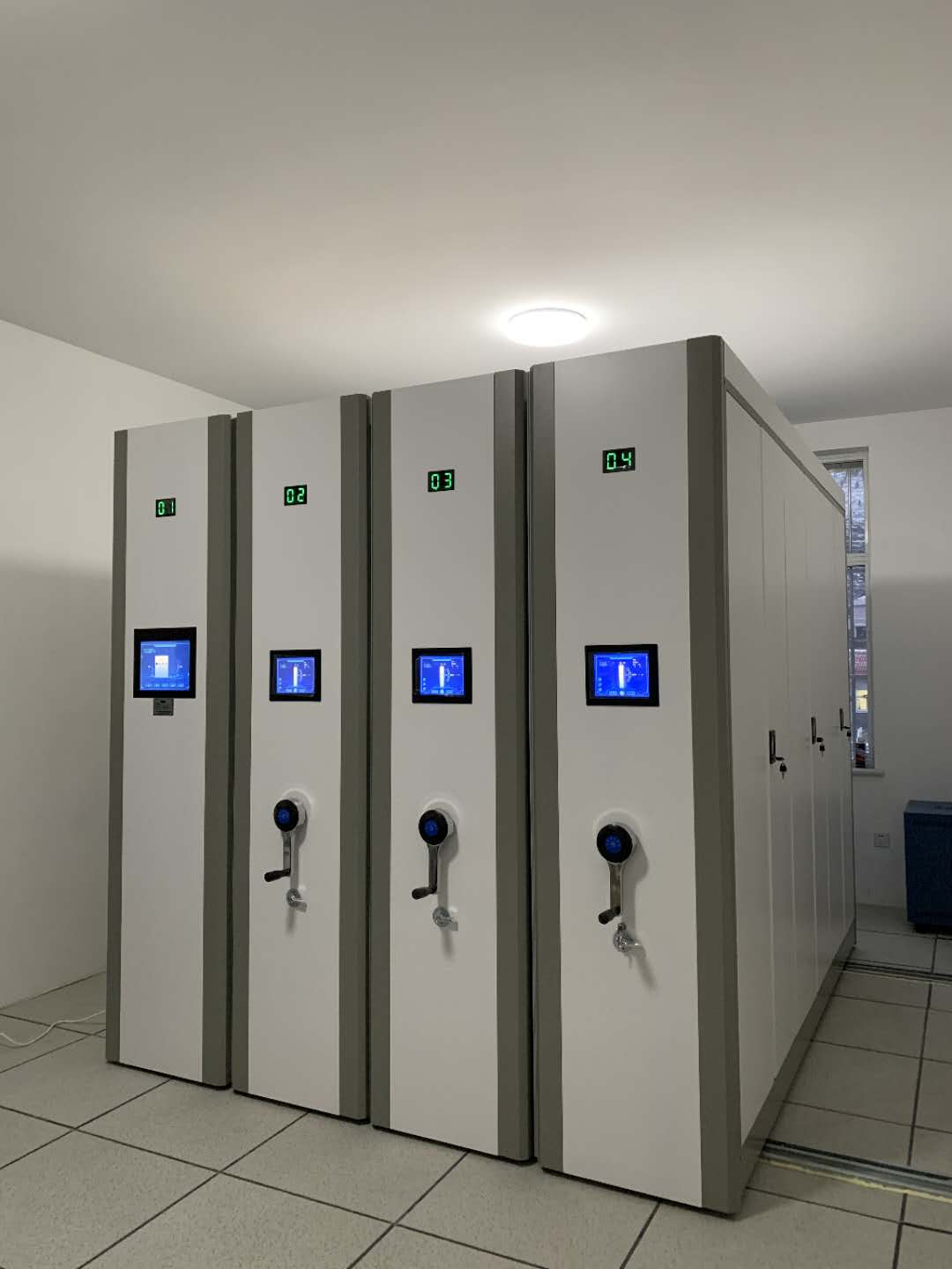 每列均装有制动装置,操作方便,制动可靠,使用存取安全 |